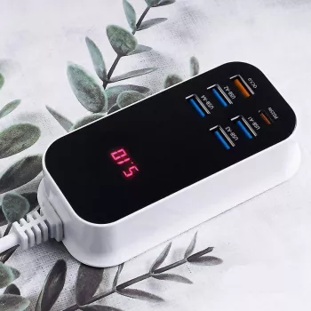 50W 6-Port USB Quick Charger with Fast Charging and LED Display